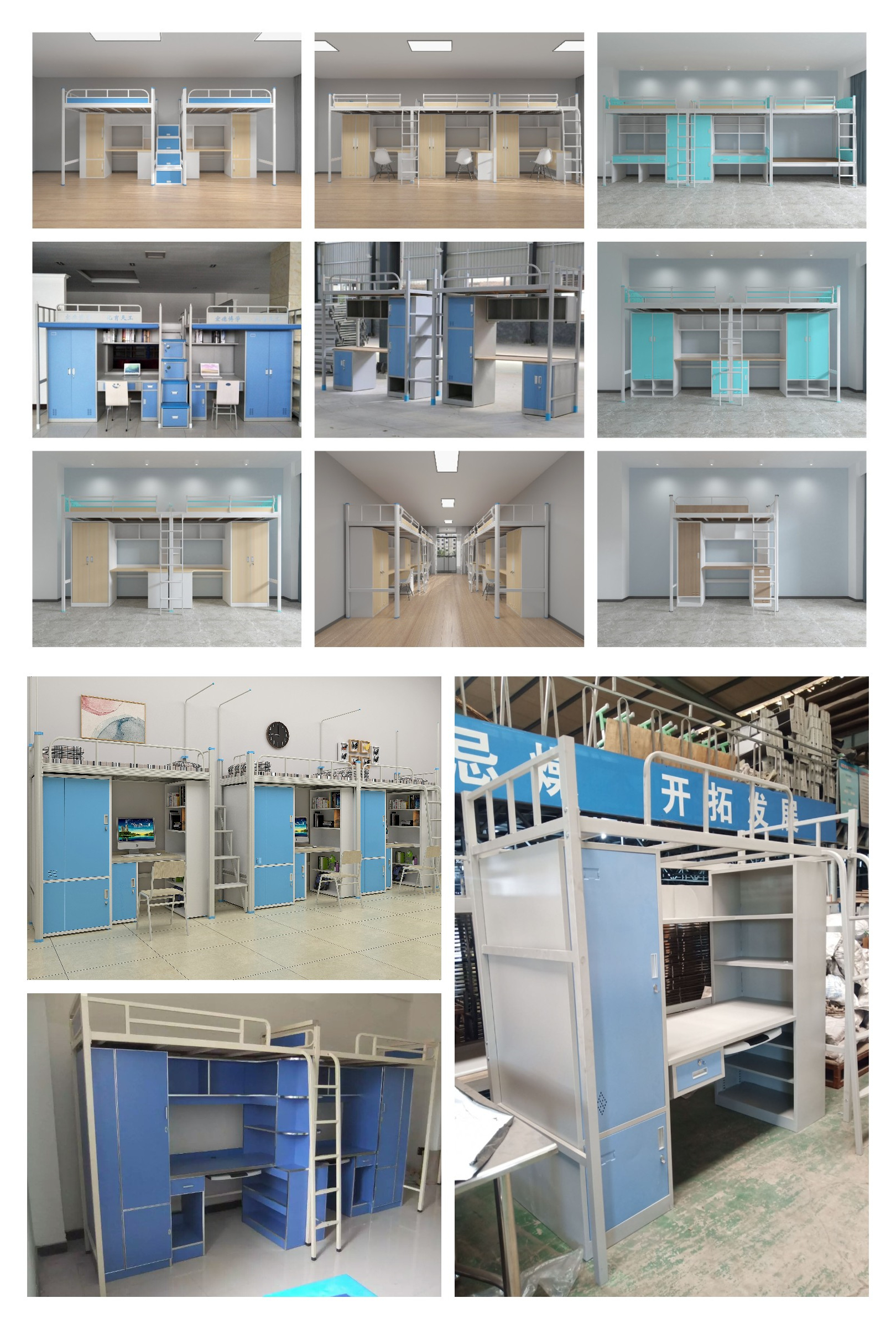 我國(guó)大學(xué)生的宿舍如今都已經(jīng)改為公寓床,我公司出產(chǎn)的公寓床是由床、書櫥、衣柜、書桌和梯架組成。書櫥和衣柜銜接在床架床腿內(nèi)側(cè),書桌將書櫥、衣柜連在一起,床架有書櫥的一頭裝置有梯架,床架的另一頭與梯架同側(cè)有護(hù)欄,書桌的桌面下有鍵盤支架和抽屜架。因?yàn)榇彩橇Ⅲw空間組合,不只節(jié)省了空間,并且規(guī)整漂亮,又便于管理。