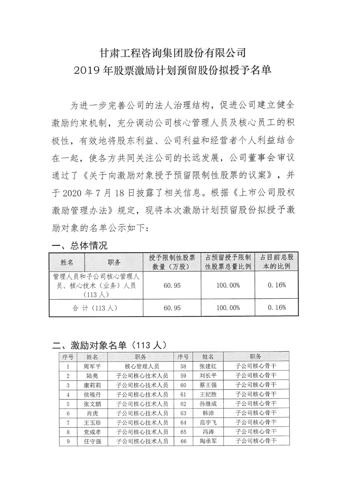 2019年股票激勵計(jì)劃預(yù)留股份擬授予名單