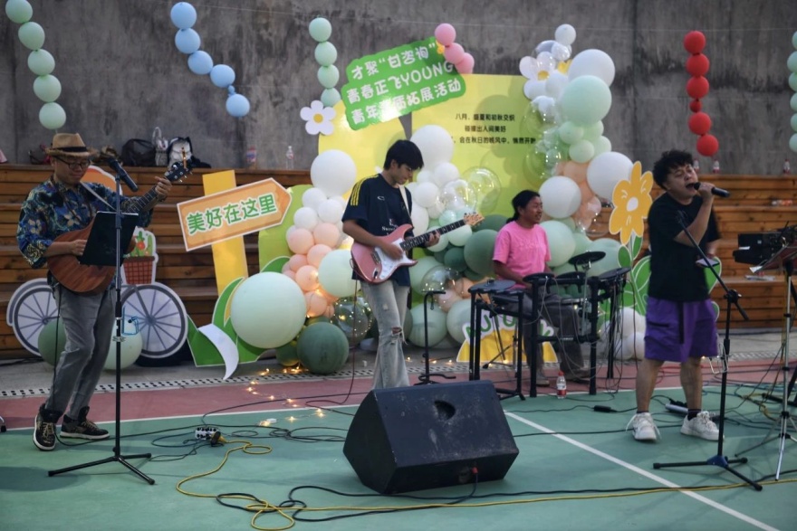 星空下,勁歌熱舞點(diǎn)燃現(xiàn)場?!案首稍儭鼻嗄陚兏髡顾L、各顯其能,開啟了一場青春音樂風(fēng)暴。伴隨著巔峰樂隊(duì)的演奏,青年們積極參與猜歌大作戰(zhàn)、完成樂隊(duì)組建及牌排練公演,傳統(tǒng)樂曲、流行音樂、潮流嘻哈、樂隊(duì)搖滾……多元歌曲悉數(shù)亮相,整個(gè)現(xiàn)場沉浸在歡樂的海洋中。