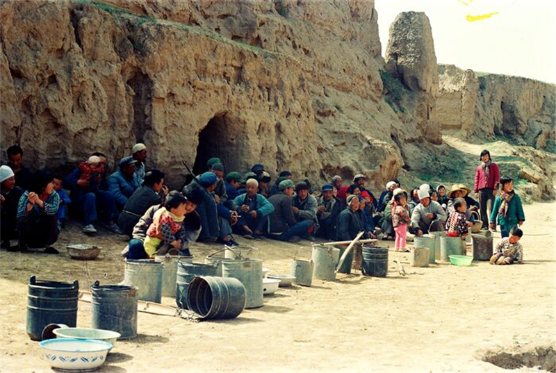 上世紀(jì)70年代,甘肅中部的定西等十多個(gè)縣大旱,數(shù)百萬群眾等待政府送水(來源:甘肅省水利廳網(wǎng)站)