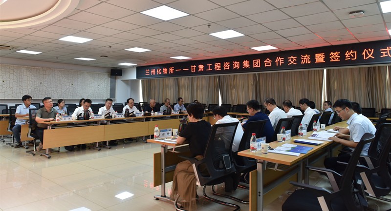 8月15日,甘肅工程咨詢集團(tuán)黨委書記、董事長(zhǎng)張佩峰一行到訪中國科學(xué)院蘭州化學(xué)物理研究所,與所長(zhǎng)周峰座談交流并簽訂科技合作協(xié)議。協(xié)議的簽訂,標(biāo)志著雙方合作進(jìn)入新階段。蘭州化物所黨委委員張永勝,集團(tuán)公司副總經(jīng)理曹慶,黨委委員、副總經(jīng)理白鑫參加。
