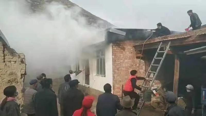 10月30日下午3點,交通監(jiān)理公司負責幫扶的臨潭縣洮濱鎮(zhèn)馬旦溝村一戶村民家中突然冒出滾滾濃煙,火光在濃煙中忽隱忽現(xiàn)。著火是一座磚木結構彩鋼屋頂的新房,火從屋頂燒起,越燒越旺。著火的房屋旁邊堆放著多年的老柴火,干燥異常,一絲火星就能點燃,而與著火點緊鄰著的就是布局緊密的鄉(xiāng)親們的房屋,再往外圍則緊接著山林,如果火勢蔓延,后果將不堪設想。