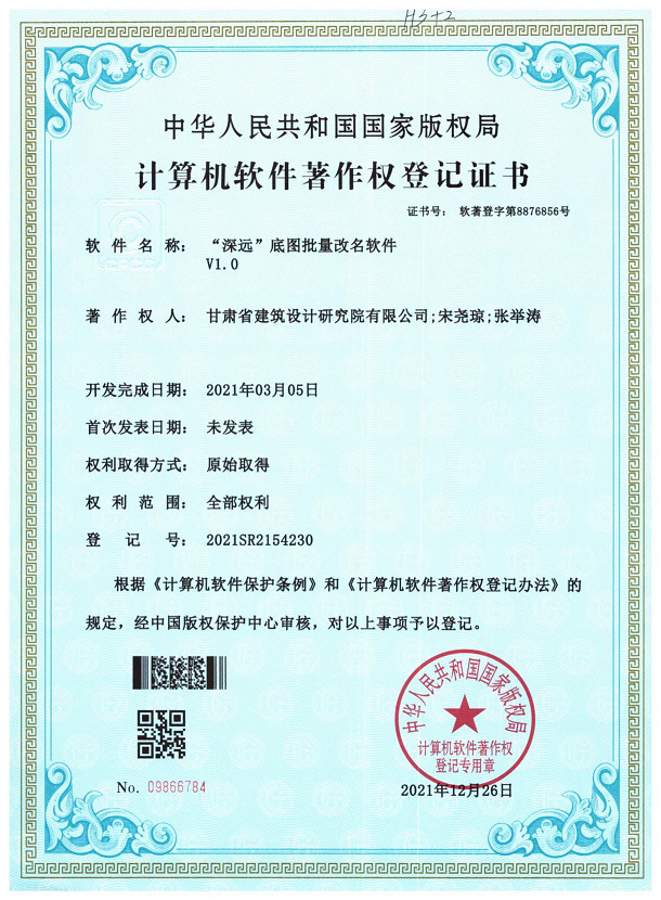 12月26日,從國家版權(quán)局傳來好消息,建筑設(shè)計院原創(chuàng)研發(fā)的“‘深遠’底圖后處理系統(tǒng)”和“‘深遠’底圖批量改名軟件”獲國家版權(quán)局頒發(fā)的計算機軟件著作權(quán)登記證書。這標志著建筑設(shè)計院智能化數(shù)字化建設(shè)工作取得了實質(zhì)進展和成效,向智能化數(shù)字化邁出了關(guān)鍵一步。