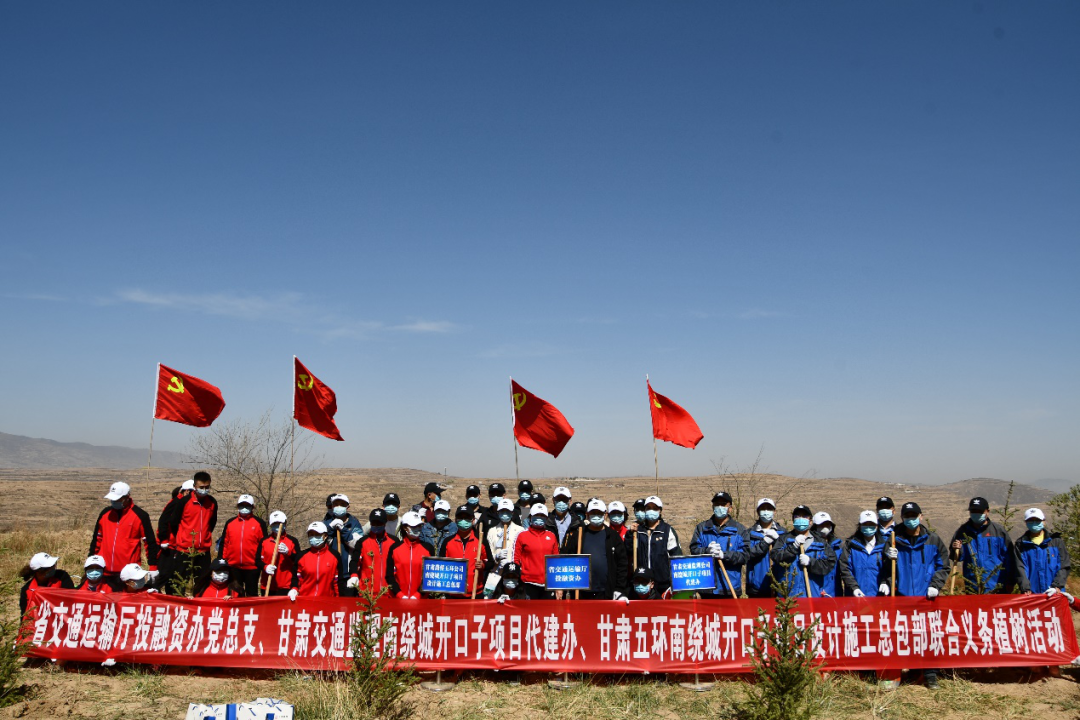 近日,甘肅省交通工程建設(shè)監(jiān)理有限公司機關(guān)第二黨支部聯(lián)合省交通運輸廳投融資管理辦公室黨總支、甘肅五環(huán)公路工程有限公司黨總支在甘肅青年生態(tài)修復林開展結(jié)對共建義務植樹活動。省交通運輸廳投融資管理辦公室黨總支、交通監(jiān)理公司、甘肅五環(huán)公路工程有限公司50余名黨員領(lǐng)導干部參加活動。