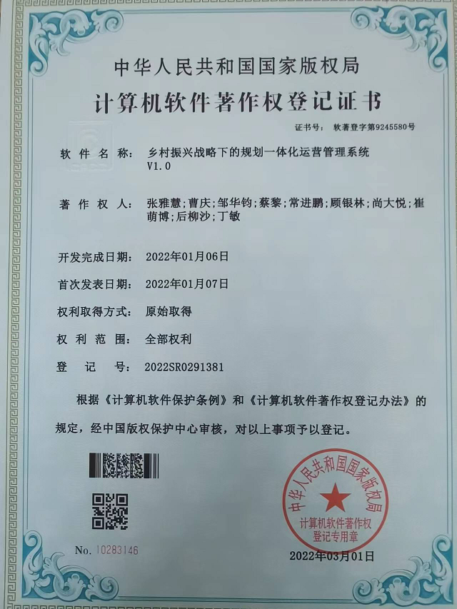 近日,從國家版權(quán)局傳來好消息,甘肅省建筑設計研究院有限公司自主研發(fā)的“鄉(xiāng)村振興戰(zhàn)略下的規(guī)劃一體化運營管理系統(tǒng)V1.0”,獲得國家版權(quán)局頒發(fā)的計算機軟件著作權(quán)登記證書。