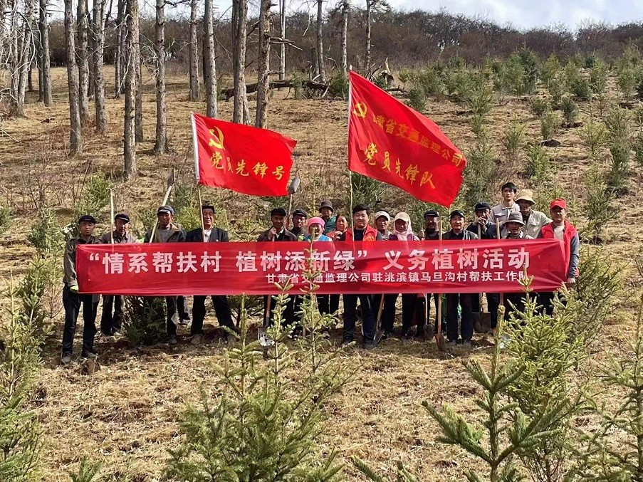 為積極響應(yīng)習(xí)近平總書記“全社會都做生態(tài)文明建設(shè)的實踐者、推動者,讓祖國天更藍、山更綠、水更清、生態(tài)環(huán)境更美好”的號召,以打造“五無甘南”,創(chuàng)建“十有家園”為目標(biāo),加快推進鄉(xiāng)村振興戰(zhàn)略實施,共建生態(tài)宜居宜業(yè)的美麗鄉(xiāng)村,近日,甘肅省交通工程建設(shè)監(jiān)理有限公司駐臨潭縣洮濱鎮(zhèn)馬旦溝村幫扶工作隊積極發(fā)揮自身職能,協(xié)同包村干部、村“兩委”成員、駐村黨員、義務(wù)志愿者及群眾代表等開展義務(wù)植樹活動。