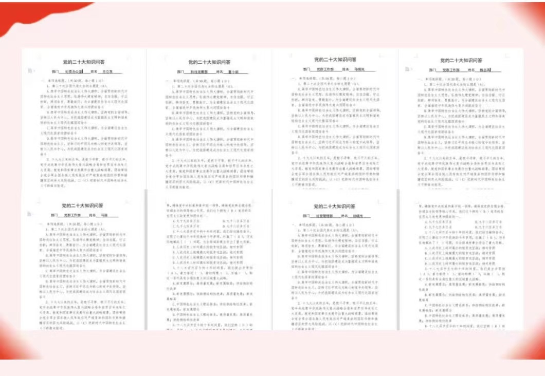 積極組織全體黨員開展黨的二十大報(bào)告相關(guān)內(nèi)容線上答題測試活動,檢驗(yàn)學(xué)習(xí)成效,固化學(xué)習(xí)成果,真正對黨的二十大精神應(yīng)知應(yīng)會盡會,以考促學(xué)強(qiáng)本領(lǐng)、以學(xué)促用增實(shí)效。