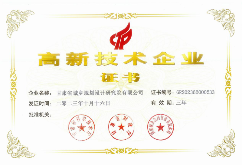 近日,經(jīng)過嚴(yán)格的審批程序,省規(guī)劃設(shè)計院申報的國家高新技術(shù)企業(yè)最終通過認(rèn)定并獲得由省科學(xué)技術(shù)廳、省財政廳和國家稅務(wù)總局甘肅省稅務(wù)局聯(lián)合頒發(fā)的“高新技術(shù)企業(yè)證書”(證書編號:GR202362000533)。