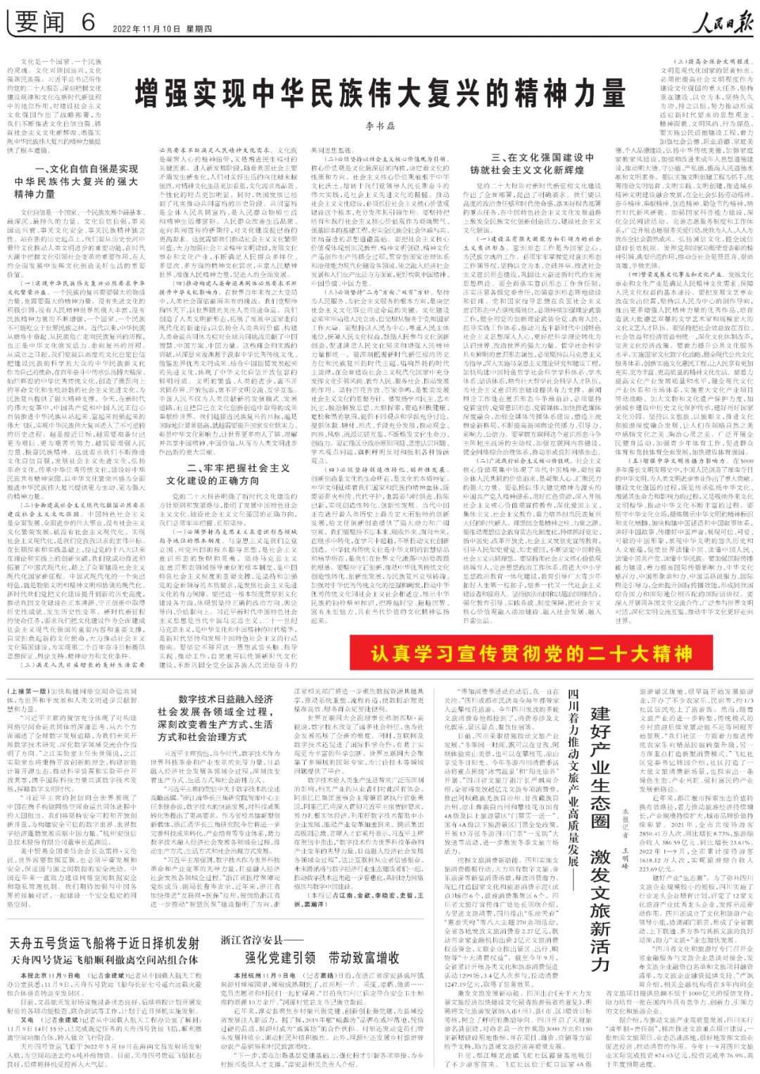 文化是一個(gè)國家、一個(gè)民族的靈魂。文化興則國運(yùn)興,文化強(qiáng)則民族強(qiáng)。習(xí)近平總書記所作的黨的二十大報(bào)告,深刻把握文化建設(shè)規(guī)律和文化在新時(shí)代新征程中的地位作用,對建設(shè)社會主義文化強(qiáng)國作出了戰(zhàn)略部署,為我們不斷推進(jìn)文化自信自強(qiáng)、鑄就社會主義文化新輝煌、增強(qiáng)實(shí)現(xiàn)中華民族偉大復(fù)興的精神力量提供了根本遵循。